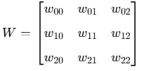 - 가중치 행렬(W): 크기 3×3
