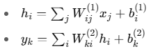 x (n_in) ──▶ W¹ ──▶ h (n_hid) ──▶ W² ──▶ y (n_out)